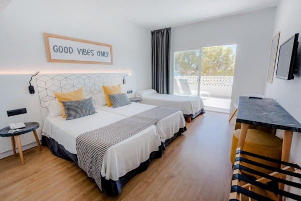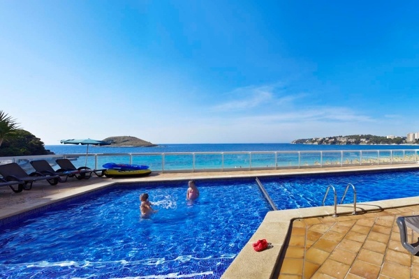 A szálloda közvetlenül a Magaluf strand mellett található, amely nyilvános, homokos és enyhe lejtéssel vezet a tegerhez. Ezen kívül a Son Matias strand is könnyen elérhető, mindössze 300 méterre a szállodától, járdán megközelíthető. Mindkét strandon napernyők és napozóágyak bérelhetők (kb. 10 EUR/szett áron). A környéken bárok, kávézók és éttermek is várják a látogatókat.