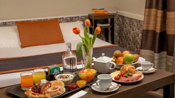 A szállodában reggeliző étterem található, ahol büfé jellegű ételek és nemzetközi konyha kínálata várja a vendégeket.