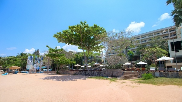 Nyilvános strand, különálló hotelrész, homokos-aprókavicsos, enyhe lejtés a tenger felé, átjárás a hotel területén keresztü,l felár ellenében: napernyők és napozóágyak a tengerparti napozóteraszra
