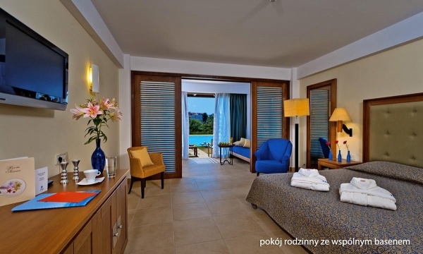 Oldalról vagy közvetlenül tengerre néző szobák, junior lakosztályok vagy családi szobák felár ellenében vehetők igénybe. A szobák részben fák által takart tengerre vagy a szálloda területére néző kilátással rendelkezhetnek. A junior suite szobák közvetlen kilátással rendelkeznek a medencére, és egy tágasabb szobát jelentenek. A családi szoba kb. kb. 40 m? egy fő hálószobából és egy pótágyazható nappaliból áll, melyeket tolóajtók választanak el egymástól.