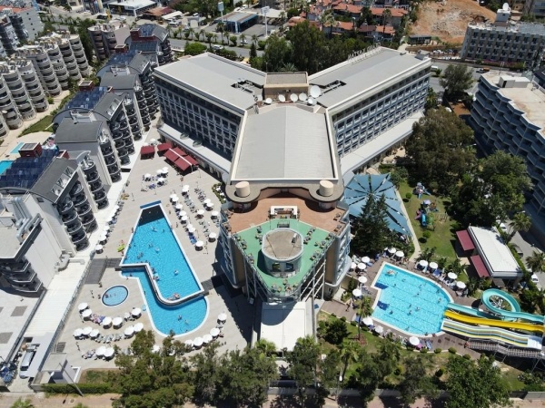 Szállás leírás: Az 5*-os, 5 emeletes, összesen 334 szobával rendelkező, családias szálloda kb. 4 km-re fekszik Alanya városközpontjától. A kavicsos-homokos tengerparttól egy út választja el, melyhez egy alagúton lehet átjutni.