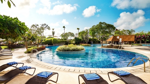 A szálloda Nusa Dua központjától mintegy 4 km-re, a nyugodt Tanjung Benoa negyedben található, közvetlen közelében egy élénk bevásárlóutcával, amely kényelmes lehetőséget kínál a sétára és a vásárlásra. A Bali National Golf Club körülbelül 5 km-re érhető el, míg Kuta nyüzsgő központja nagyjából 12 km-re, Denpasar városközpontja pedig 20 km-re fekszik. A vendégek kényelmét ingyenes szállodai buszjárat is szolgálja, amely Nusa Dua központjába közlekedik. A denpasari nemzetközi repülőtér hozzávetőleg 15 km-re található, így a megérkezés és az utazás is egyszerű és gyors.