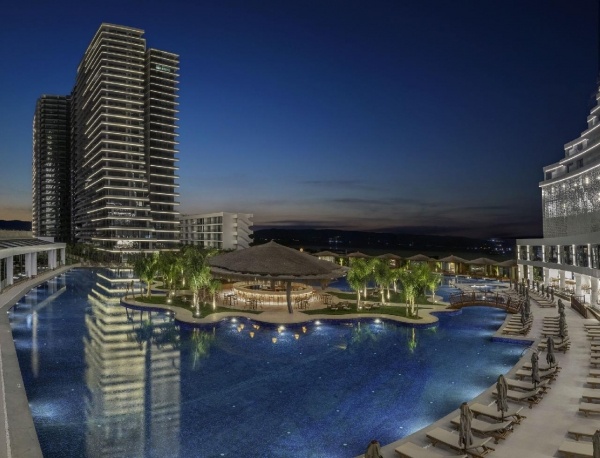 Fekvése: a 2023-ban megnyitott, ikonikus épületegyüttes több különálló toronyból és egy hatalmas, trópusi hangulatú medencekomplexumból áll, amelyet Észak-Ciprus ,,legnagyobb medencéjeként" tartanak számon. A szálloda grandiózus méreteivel, modern dizájnjával és kiváló szolgáltatásaival a régió egyik új luxusreferenciájává vált. A szálloda kb 500 méterre található a széles, homokos tengerparttól, ahol a hotel a vendégek számára privát partszakasszal, napernyőkkel és napágyakkal biztosít kényelmes pihenést. A partszakaszra folyamatos ingyenes shuttlejárat közlekedik (privát szervizúton). A Grand Sapphire Resort négy fő toronyépületben és több kisebb szárnyban(resort) kínál szobákat, összesen több mint 1200 luxuskategóriás lakóegységgel. A környék az elmúlt években az egyik legdinamikusabban fejlődő üdülőterületté vált Észak-Cipruson - új éttermekkel, bárokkal, üzletekkel és promenáddal. Famagusta központja kb. 15-18 km, míg a Larnaca nemzetközi repülőtér kb. 65-70 km távolságra helyezkedik el. A transzferidő a határátkeléstől függően kb. 90 perc. A szálloda tökéletes választás azok számára, akik egy ultramodern, új építésű luxusresortban szeretnének pihenni, kiváló létesítményekkel, hatalmas medenceparkkal, széles gasztronómiai kínálattal, saját kaszinóval és családbarát szolgáltatásokkal. Stílusa a mediterrán-török vendéglátást ötvözi a modern városi hotelérzéssel - így családok, párok és premium utazók egyaránt megtalálják számításaikat.