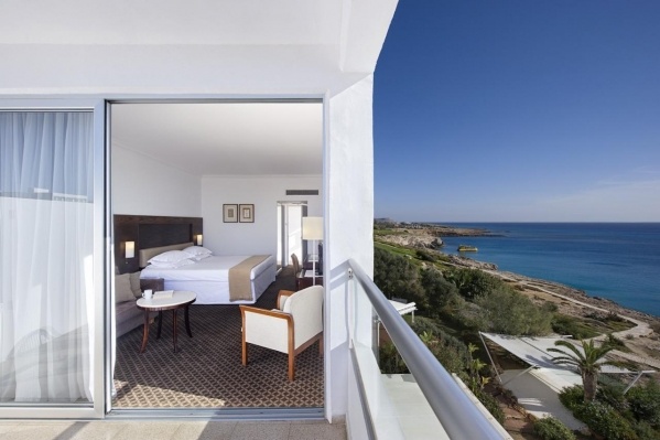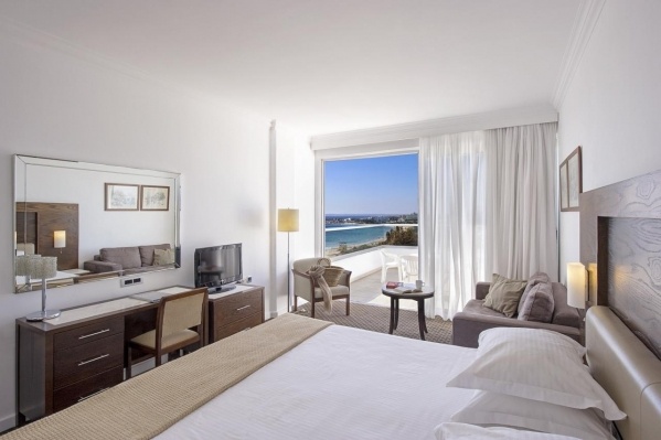 Fekvése: Ayia Napa népszerű tengerparti üdülőhely lankásabb részén, a Grecian Bay nevű öbölben, egy kiugró sziklaszirten épült, nagy parkosított területtel rendelkező 163 szobás szálloda. A szálloda Ayia Napa központjától mindössze 15 perces sétára található, így tökéletes kombinációját nyújtja a nyugalomnak és a városi pezsgésnek. A Grecian Sands közvetlenül a tengerparton helyezkedik el, ahol a vendégek élvezhetik a napozást és a kristálytiszta vizet. A szálloda közelében több híres látnivaló található, például a Thalassa Múzeum és a Cape Greco Nemzeti Park. A Grecian Sands Hotel tökéletes választás mindazok számára, akik luxuskörnyezetben szeretnék eltölteni nyaralásukat Cipruson. Tengerparti elhelyezkedése, kiváló szolgáltatásai és lélegzetelállító kilátása garantálja, hogy az itt tartózkodás felejthetetlen legyen. Foglalja le szállását most, és élvezze a ciprusi napfényt és a mediterrán életstílus varázsát a Grecian Sands Hotelben!