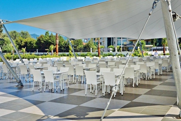 All inclusive: reggeli (7:00-10:00), késői reggeli (10:00-10:30), ebéd (12:30-14:00), vacsora (18:30-21:00) büfé formájában a főétteremben
