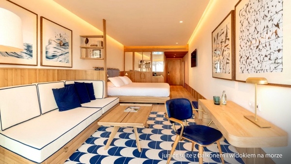 A junior lakosztályok tágasabbak, kb. 37 m?, pótágyazhatók (1 felnőtt vagy 2 gyermek részére kanapé formájában), fürdőszobájukban köntös és papucs is van. Elérhetők erkéllyel vagy terasszal, kilátással a környékre, illetve tengerre néző változatban is, minibár használata felár ellenében lehetséges.