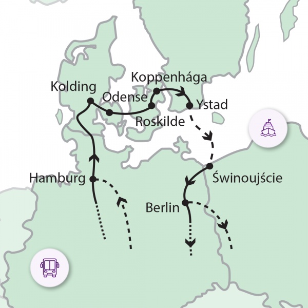 Reggeli után Roskilde központjába megyünk. A várost Kékfogú Harald (akiről a Bluetooth-t nevezték el) alapította 980-ban. Miután a katolicizmus megjelent Dániában, Roskilde lett a vallási központ. Nyitásra érkezünk a katedrálishoz, mely a Világörökség része, és ahol több mint 40 uralkodó sírját láthatjuk, ezzel felidézve a dán történelmet. Ezután rövid időre átmegyünk a Viking Hajómúzeumba, ahol megnézhetünk 5 eredeti viking hajót, illetve sok egyéb érdekességet. Dél körül indulunk a fővárosba, Koppenhágába. Először az Amalienborg palotához megyünk. Ezt követően a Christiansborg palotát látogatjuk meg, ahol a dán parlament ülésezik, majd következik a belváros megtekintése. Sokak szerint a leghangulatosabb észak-európai főváros Koppenhága. Délután, mielőtt egy újabb hídon kelnénk át - melynek túlsó fele már Svédországban van -, rövid szabadprogram. Útközben kimegyünk a tengerpartra a híres Sellőlány szoborhoz. A nap végén a svédországi Ystadba érkezünk, ahonnan éjszakai kompon Lengyelországba utazunk. Szállás a hajón 4 ágyas (felár esetén 2 ágyas) tusolós, WC-s belső kabinokban. Fakultatív vacsora.