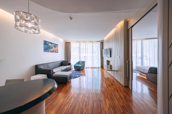 Lakosztály 2 fős: (1 pótágy lehetőséggel) kb. 75 m2, klimatizált, nyitott fürdőszoba (zuhanyzó, WC, hajszárító, köntösök, papucsok), hálószoba és nappali ajtóval elválasztva, hidromasszázs kád, vezeték nélküli internet, televízió, telefon, kávé-/teáskészlet, kis hűtőszekrény, erkély (asztal és székek), városi kilátás, felár ellenében: széf, minibár (fogyasztás szerint fizetendő).