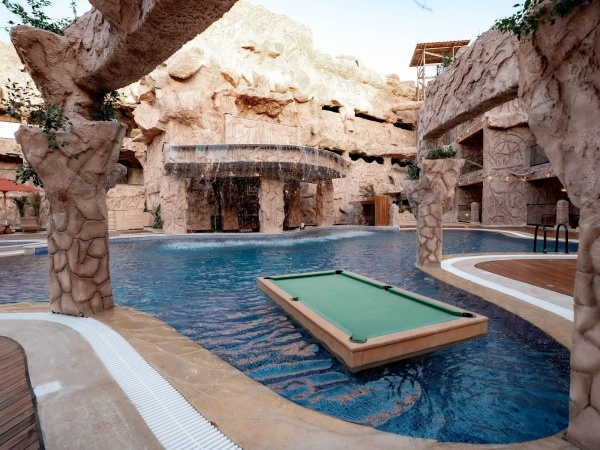 Ez az egyedi hangulatú, kizárólag 16éven felüli vendégeket fogadó szálloda különlegesélményt kínál, hiszen a komplexumőskori stílusú,„Flintstone család” ihlette barlangszobákbóláll. A hotel közvetlenül a finomhomokos tengerparton helyezkedik el,így ideális választás a nyugodt, tengerparti pihenésre vágyó vendégek számára. A szálloda kb. 18 km-re található Hurghada repülőterétől, míg Hurghada városközpontja, bevásárlási lehetőségekkel együtt, mintegy 10 km-reérhető el. A komplexumösszesen 380 szobával rendelkezik, melyek egy kétszintes főépületbenés három, egyenként háromemeletes melléképületben helyezkednek el. A vendégek kényelmét 24órás recepció, liftek, valamint térítés ellenében internet sarok, illetve a lobbyban ingyenes Wi-Fi szolgálja. A gasztronómiai kínálatot egy büféétteremés háromà la carteétterem biztosítja. Emellett négy báráll a vendégek rendelkezésére. Térítés ellenében mosodai szolgáltatásés orvosi ellátás is igénybe vehető.