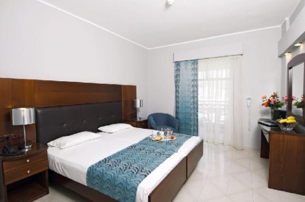 A tengerparttól kb. 200 m-re épült, pálmafákkal és mediterrán növényekkel körbevett, modern, két/háromszintes tömbökből álló, lifttel rendelkező 142 szobás épületegyüttes. A közelben (kb. 500 m) tavernák, kávézók, üzletek, vendéglők találhatók.