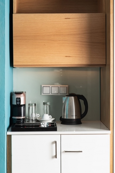 - 2-4 ágyas executive apartman: felújított, modern, 2 légteres szobáiban (1 hálószoba és egy nappali rész) szobáiban légkondicionáló, sat TV, hajszárító, modern fürdőszoba pipere cikkekkel, ingyenes WIFI, kávé és teafőzési lehetőség, minihűtő, széf, balkon/terasz található. Az apartman alapterülete kb. 45 nm.