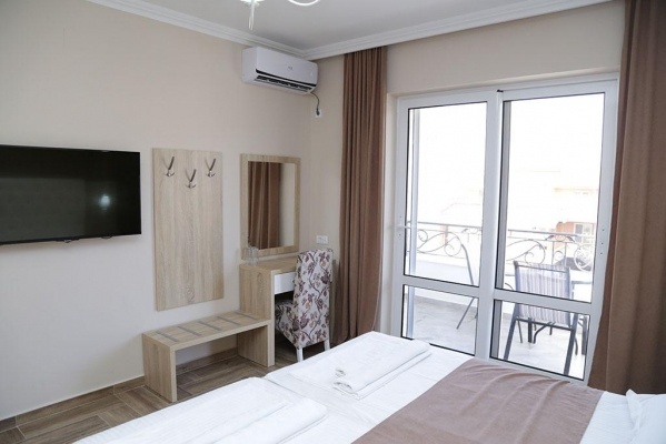 Szobák: 2 ágyas pótágyazható szobák, fürdőszoba hajszárítóval, TV, klíma, mini- hűtő, erkély tartozik hozzájuk.