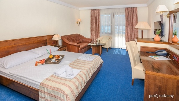 A családi szoba 2 fő részére, akár 1 vagy 2 pótággyal, kb. 26 m?-es. A fürdőszobában kád vagy zuhanyzó, WC és hajszárító található. A szobában vezeték nélküli internet, műholdas televízió és széf biztosítja a kényelmet. Ingyenes kiságy áll rendelkezésre 2 év alatti gyermekek számára, előzetes foglalás szükséges.