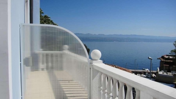 Strand: 50 m-re, kavicsos, sziklás, betonozott részek.