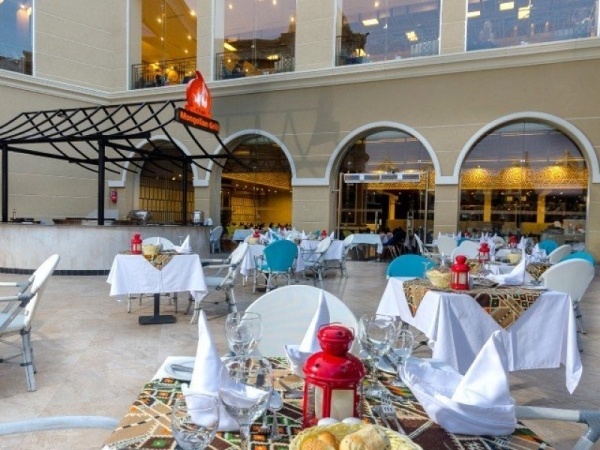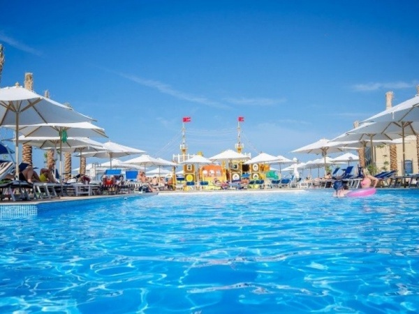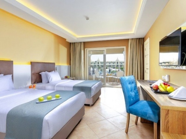 A szálloda 50 000 m² alapterületű,összesen 387 szobával rendelkezik. A hallban egy 24órás recepcióés előcsarnok található - a WLAN itt ingyenesen elérhető. Van még egy fő svédasztalosétterem, 2à la carteétterem (olaszésázsiai), 2 bár, strandés medence bár, kávézó, fodrászés gyógyfürdő. A tágas kertben található a modernédesvízi medence világ, amely 14 medencébőláll (részben fűthető), 2 különálló gyermekmedencével, napozóterasszal, valamint az utca másik oldalán (kb. 200 m) található a modernés nagy vízipark, mely kicsikés nagyok számára egyarántélménydús kikapcsolódást biztosít. A nagyágyak, napernyőkés strandtörölközők ingyenesen elérhetők a medencénélés a strandon egyaránt.
