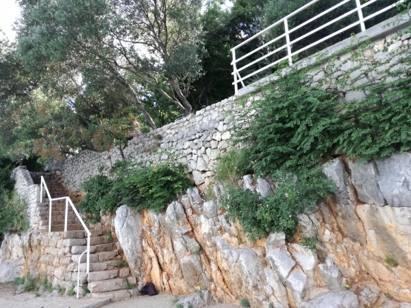 Tengerpart: kiépített betonos tengerpart, sok lépcsőn közelíthető meg.