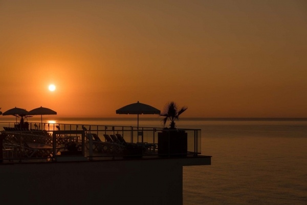 A közelben homokos, lassan mélyülő közösségi strand található, amely az utcán való átkeléssel érhető el. A strandon felár ellenében napernyők és napozóágyak vehetők igénybe.