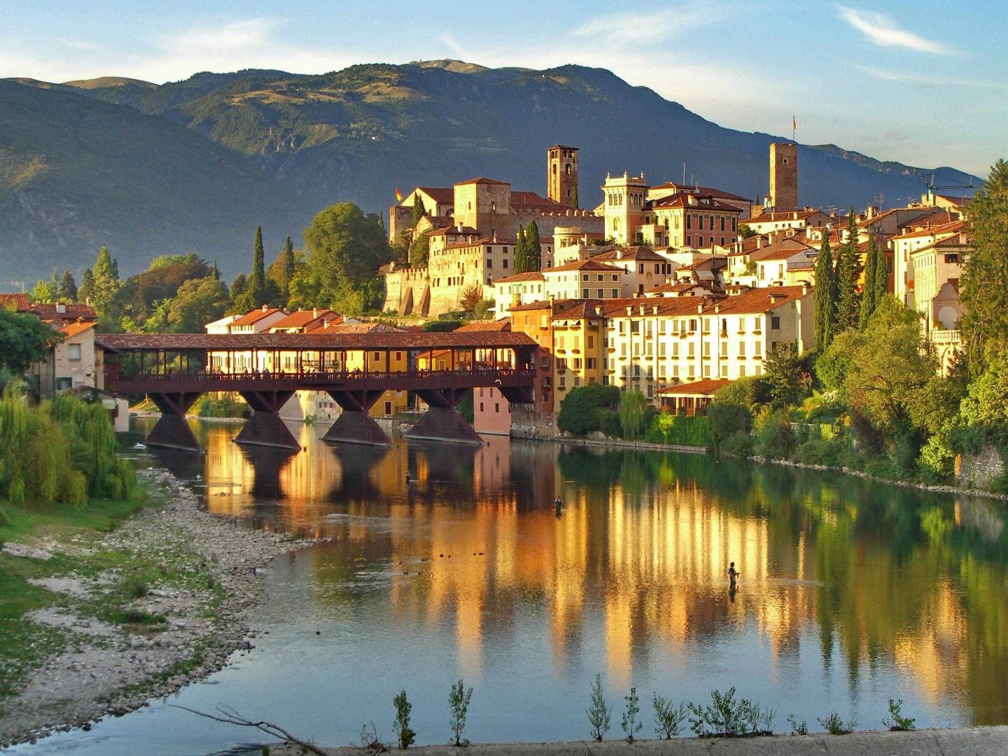 Indulás Budapestről a kora reggeli órákban. Első megállónk egy ismeretlen gyöngyszemhez, Bassano del Grappa varázslatos kisvárosába vezet, mely Olaszország legrégebbi szeszfőzdéjében gyártott grappájáról híres. Másik nevezetessége a kor híres építésze Andrea Palladio által tervezett fedett fahíd. A Brenta folyó mindkét oldala annyira beépült, hogy a híd bejárata leginkább egy díszes kapualjra emlékeztet. Sétánk során megnézzük még a Piazza Libertá-t, és a San Franceso dómot is. Szabadidőben érdemes megkóstolni a helyi specialitások közé tartozó bassanói spárgából készített ételeket, és a különböző, grappával ízesített süteményeket is. Továbbutazunk  Abano Terme városkájába, majd elfoglaljuk szálláshelyünket.