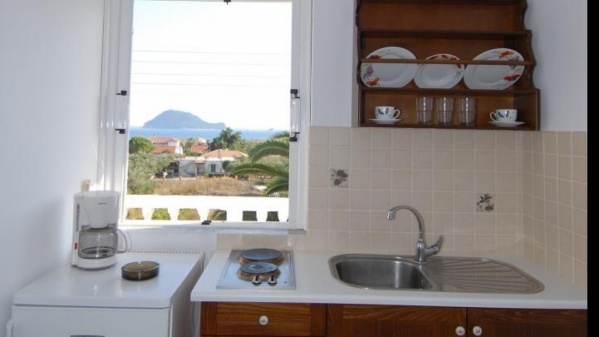 Agios Sostis kikötőjének közelében, egy dombon található az apartmanház, így az udvarból és erkélyek többségéről lélegzetelállító a kilátás a távolban lévő tengerre és Marathonissi szigetre. Az átlagnál igényesebb stúdiók. Azon apartmanok egyike, melyek mindig teltházasak. A konyhában nincs melegvíz.