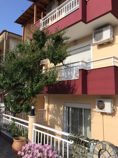 Az apartmanház Sarti Village-en található, a homokos-aprókavicsos tengerparttól kb. 100 méterre, Sarti központjától kb. 600 méterre.