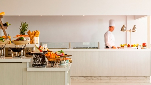 A szállodában a Palettes főétterem változatos svédasztalos kínálattal várja a vendégeket, helyi és nemzetközi fogásokkal, valamint vegetáriánus és előzetes kérésre gluténmentes ételekkel. Emellett két ? la carte étterem is rendelkezésre áll - az Akakiko ázsiai ízeket és sushit kínál, míg a Meze by Elliniko étteremben autentikus görög ételeket szolgálnak fel. Az ? la carte éttermekben előzetes foglalás és smart casual öltözködés szükséges, férfiaknak hosszú nadrág viselése kötelező. Két bár, köztük a medence melletti bár gondoskodik a frissítő italokról. Felár ellenében igénybe vehető a Prémium All Inclusive ellátás, amely bőséges svédasztalos reggelit (7.00-10.30), ebédet (12.30-14.30) és vacsorát (18.30-21.30) tartalmaz a főétteremben, valamint napközbeni snackeket (11.00-12.30 és 15.00-17.00) a medencebárban. A vendégek alkoholmentes italokat, illetve helyi és import alkoholos italokat fogyaszthatnak minden bárban 10.00 és 24.00 óra között. A program részeként hetente egyszer vacsora jár az egyik ? la carte étteremben, előzetes foglalással, a minibár pedig naponta feltöltésre kerül két palack ásványvízzel, két gyümölcslével, két üdítőitallal és két sörrel.