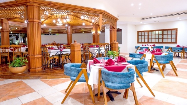 A szálloda főétterme változatos, svédasztalos fogásokat kínál nemzetközi konyhával, így minden vendég megtalálja a kedvére valót. Emellett öt ? la carte étterem áll rendelkezésre: a Pomodoro az olasz konyha kedvelőit várja, a Chin-Chin autentikus kínai ételeket kínál, a Tex-Mix a mexikói ízek világába kalauzol, a Mashrabya libanoni-orientális specialitásokkal csábít, míg a halétterem - felár ellenében - friss tengeri fogásokat tálal.