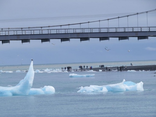 Következő állomásunk a Jökulsárlón gleccserlagúna, ahol hatalmas jéghegyek törnek le a Brei?amerkurjökull gleccserről, és lassan sodródnak az Atlanti-óceán felé. A táj folyamatosan változik, így minden pillanatban új arcát mutatja. A fókák gyakran feltűnnek a víz felszínén, miközben csendesen siklanak a jégtömbök között. A parton állva is lenyűgöző élmény a jéghegyek látványa, fényképszünet.