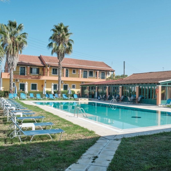 Sidari csendes, strandhoz közeli részén medencés apartman.