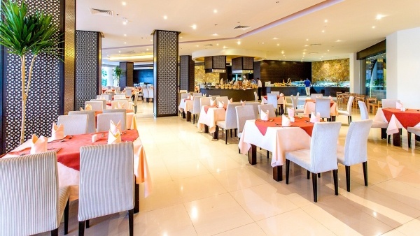 A szálloda teljes ellátást biztosít, amely tartalmazza a reggelit (7.00-10.00), a késői reggelit (10.30-11.30), az ebédet (13.00-15.00) és a vacsorát (18.30-22.00) büfé formájában a fő étteremben. Ezen kívül snackek (12.30-16.00) is rendelkezésre állnak a tengerparti bárban, és tea (17.00-18.00) is várja a vendégeket a fő étteremben. Az alkoholmentes italok és helyi alkoholos italok a kijelölt bárokban (10.00-24.00) fogyaszthatók. Ha minimum 5 éjszakát tartózkodik, ingyenes vacsora jár a választott ? la carte étteremben. Az all inclusive ellátás igénybevételéhez elengedhetetlen az all inclusive karszalag viselése.