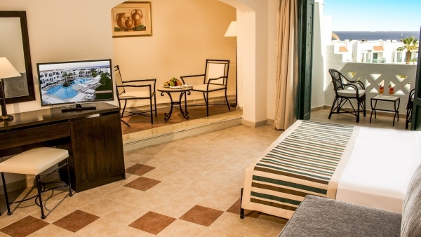 A felsőbb kategóriájú szobák tágasabbak, 30-38 m?-esek, és a standard szobák teljes felszereltségét kínálják, kiegészítve a medencére nyíló kilátással. A kétfős elhelyezés mellett egy egyszemélyes pótágy is kérhető gyermek részére, az erkély vagy terasz pedig tökéletes helyszín a pihenéshez. A minibár használata itt is feláras.
