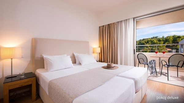 A deluxe szoba oldalsó tengerre néző kilátással, légkondicionált, kényelmes fürdőszobával (kád vagy zuhany, WC, hajszárító, kozmetikai készlet, papucs) várja a vendégeket. A szoba felszereltségei: ingyenes vezeték nélküli internet, LCD televízió, műholdas televízió, telefon, hűtőszekrény, kávé/tea készlet, széf. Ingyenes kiságy elérhető 2 éves korig, előzetes kérésre. Az erkély asztallal és székekkel, oldalsó tengerre néző kilátással.
