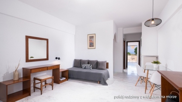 A családi szoba két különböző helyiséggel rendelkezik, kényelmes légkondicionálás, fürdőszoba (kád és zuhanyzó, WC, hajszárító, kozmetikai készlet, papucs) található benne. A szoba további felszerelései közé tartozik ingyenes vezeték nélküli internet, LCD televízió, műholdas televízió, telefon, hűtőszekrény, kávé/tea készlet, széf. Ingyenes kiságy elérhető 2 éves korig, előzetes kérésre. Az erkély vagy terasz asztallal és székekkel, kertre néző kilátással. Standard tengerre néző szoba (2 fő részére, kb. 24 m?):