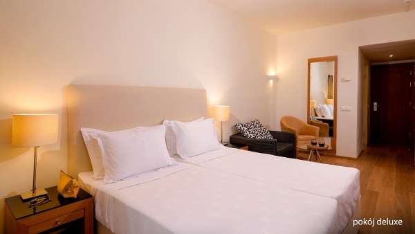 A deluxe szoba oldalsó tengerre néző kilátással, légkondicionált, kényelmes fürdőszobával (kád vagy zuhany, WC, hajszárító, kozmetikai készlet, papucs) várja a vendégeket. A szoba felszereltségei: ingyenes vezeték nélküli internet, LCD televízió, műholdas televízió, telefon, hűtőszekrény, kávé/tea készlet, széf. Ingyenes kiságy elérhető 2 éves korig, előzetes kérésre. Az erkély asztallal és székekkel, oldalsó tengerre néző kilátással.
