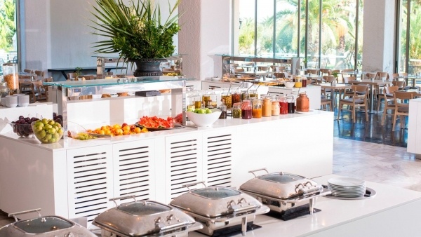 A szállodában számos étkezési lehetőség közül választhatnak a vendégek. A főétterem büfé jellegű ételekkel várja a látogatókat, míg a tengerparti Magnolia étterem ? la carte étkezésekkel kínál nemzetközi és görög konyhát, etetőszék és gyerekmenü is elérhető, valamint vegetáriánus ételek is szerepelnek a választékban. Az Fiki Fiki Ázsiai Perui étterem egzotikus konyhát kínál ? la carte formában, és a szálloda vendégei 30% kedvezményben részesülhetnek. A Ninemia Brunch étterem a tengerparton kínál különleges étkezéseket.