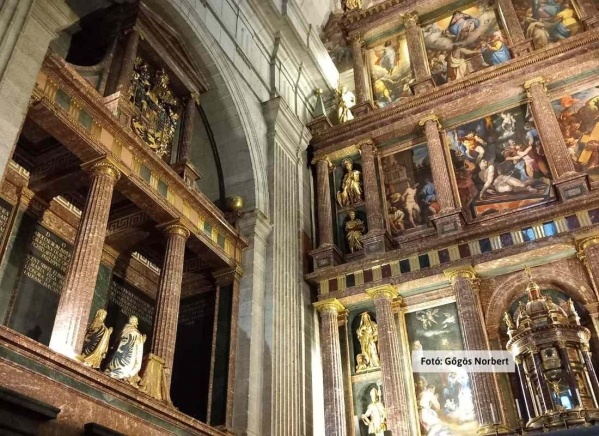 Reggeli és kijelentkezés után poggyászaink bepakolása a buszba. Utazás Európa (s egyben Földünk) legnagyobb reneszánsz épületegyütteséhez, a 940.000 m2 (!) méretű San Loprenzo del El Escorialhoz. Az El Escorial királyi kolostor - bazilika - királyi palota - uralkodói pantheon - birodalmi könyvtár és gyűjtemény - kórház, valamint iskola is egyben. II. Fülöp idején épült, máig is hihetetlen módon, csak 21 év alatt (1563-1584). Bazilikájának 95 méter magas kupolája alatt 48 oltár (!) előtt áldoztak (áldozhatunk) hálával az isteni gondviselésnek. 26 spanyol király, infánsok és főhercegek sírjai hirdetik a spanyol világ múltbéli befolyását, máig örök méltósággal néznek le ránk V. Károly és II. Fülöp szobrai, festményei. Az irdatlan, UNESCO világörökségi épület-óriás bejárása először közösen - majd egyénileg.
