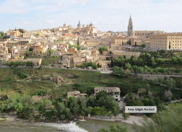 Reggeli után csomagjaink bepakolása a csomagszobába, majd találkozás helyi házigazdánkkal. Séta és feljutás az Escalares-vel a történelmi városrészbe, a Plaza de Zocodover főtérre. ,,Városnézés-időutazásunkat" a 3. században kezdjük, a római palotából átépített mór erődnél, az El Alcazarnál (kívülről). Sétánk következő állomása a del Tránsito zsinagóga, majd az El Greco Múzeum épülete (kívülről). Látogatás a Mezquita Christo de la Luz mecsetnél, majd az 1200-as évektől épült, gigászi Primada Santa María katedrális bejárása, közösen. El Greco egyik leghíresebb freskójának megtekintése az Iglesia Santo Tome-ban. Ebéd,- és szabadidőnk megkezdése előtt az ókori római eredetű hidak (San Martín és Alcantara) beazonosítása, majd szabadidő, az immár ismerős UNESCO világörökségi Felső-óvárosban. (Toledoi penge, konkvisztádor stílusú tőr, kard és páncélzat fakultatív beszerzési lehetősége.)