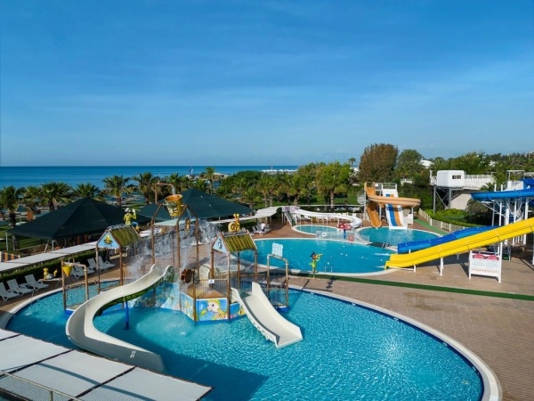 SZOLGÁLTATÁSOK: medencék napernyőkkel és napozóágyakkal o beltéri medence o vízicsúszdák o főétterem o bárok (medence, lobby, diszkó, tengerpart) o animációs programok o diszkó o amfiteátrum o fitneszterem o step aerobic o vízi torna o vízi játékok o röplabda o teniszpálya o boccia o szauna o gőzfürdő o törökfürdő o wifi a lobbyban