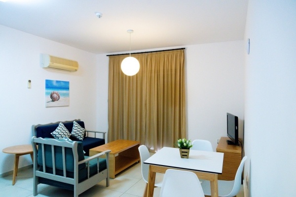 A felülnézeti apartman oldalsó tengerre néző kilátással szintén 2 fő részére (1 pótágy lehetőséggel) kínál kényelmes szállást. A szobában 1 hálószoba található, egyénileg szabályozható légkondicionálással, fürdőszobával, felszerelt konyhasarokkal, vezeték nélküli internetkapcsolattal, műholdas televízióval, telefonnal, kis hűtőszekrénnyel és ingyenes kisággyal 2 éves korig, előzetes kérésre. Az apartman erkéllyel rendelkezik, asztallal és székekkel, és az oldalsó tengerre néző kilátás biztosít kellemes pihenést. Térítés ellenében széf is igényelhető.