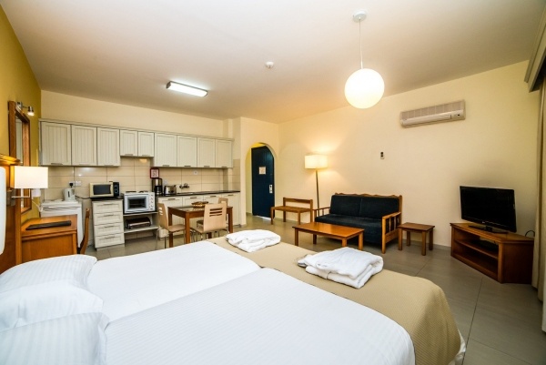 A superior stúdió 2 fő részére (1 pótágy lehetőséggel) kínál kényelmes szállást, melynek alapterülete körülbelül 36 m?. A stúdióban egyénileg szabályozható légkondicionálás, fürdőszoba zuhanyzóval, WC-vel, hajszárítóval és kozmetikai készlettel, valamint felszerelt konyhasarok található. Az internetkapcsolat vezeték nélküli, és műholdas televízió is biztosított. A szobában telefon, kis hűtőszekrény és ingyenes kiságy 2 éves korig, előzetes kérésre, áll rendelkezésre. A stúdióhoz erkély is tartozik, asztallal és székekkel, és a kilátás a környékre nyújt festői panorámát. Térítés ellenében széf igénybevétele is lehetséges.