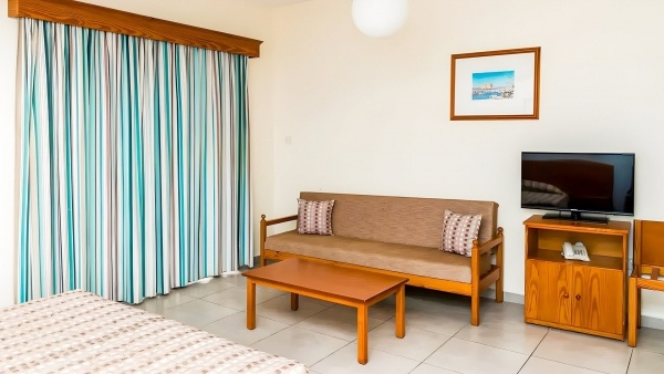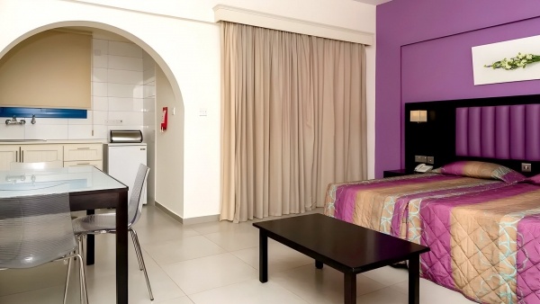 Az ár tartalmazza: A kényelmes, kb. 20 m?-es stúdiószobák két fő részére kínálnak szállást, pótágy elhelyezésére is van lehetőség. Légkondicionáltak, fürdőszobával (zuhanyzóval vagy káddal, WC-vel és hajszárítóval), műholdas televízióval, telefonnal, kis hűtőszekrénnyel és vezeték nélküli internettel felszereltek, kilátással a környékre. Felár ellenében vasalókészlet és széf is igénybe vehető. A tágasabb, kb. 34 m?-es szuperior stúdiók hasonló felszereltségűek, kiegészítve kozmetikai készlettel, köntössel és papuccsal, valamint konyhasarokkal és kérésre kávéfőzővel. Érkezéskor gyümölcskosár, egy üveg bor és víz várja a vendégeket. Az apartmanok kb. 40 m? alapterületűek, hálószobával és ajtóval elválasztott nappalival rendelkeznek, ideálisak családok számára. Felszereltségük megegyezik a stúdiókéval, emellett erkély vagy terasz is tartozik hozzájuk, ahonnan a környékre nyílik kilátás. Felár ellenében itt is elérhető a vasalókészlet és a széf.