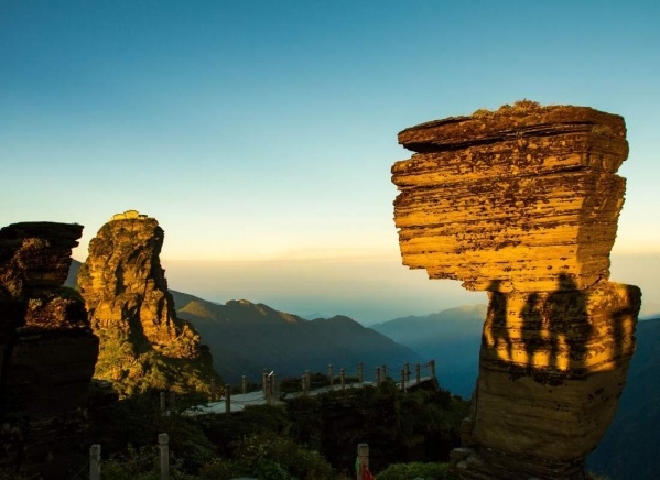 Reggeli után a Fancsing-hegy világörökségi buddhista templomainak felfedezése következik. A 7-10. század között számtalan templomot építettek itt szintén a megvilágosodást keresve, sajnos mára már csak néhány maradt fenn belőlük. A Vörös felhők arany csúcsa közel száz méterrel magasodik a környező hegyek fölé, láthatjuk még a Régi arany csúcsot, a Fancsingsan templomot, és a 330 méter magas szikla tetején álló két aprócska templomot, melyet a sziklahasadék felett egy parányi kőhíd köt össze. A hegy csúcsára 8000 lépcső vezet, de ennek egy részét kabinos felvonóval tesszük meg. Érdemes felmenni, ha gyönyörködni szeretnénk a mesebeli táj szépségében. Vacsora egy helyi étteremben.