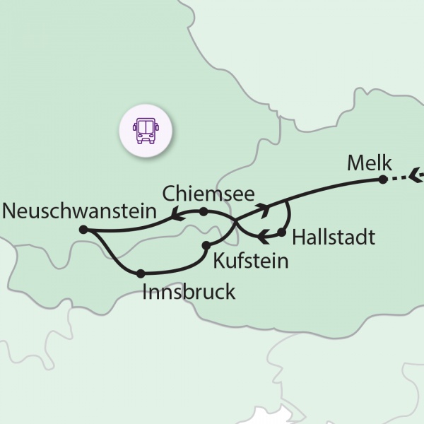 Ingyenes kora reggeli transzferek indulnak Szegedről, Debrecenből, Miskolcról és Pécsről Budapestre. Mindhárom útvonalon további felszállási lehetőségeket biztosítunk. A délelőtti órákban, a hegyeshalmi határátlépés után érkezünk Ausztriába. Első megállónk Melk lesz, ahol megtekintjük a mesés Benedek-rendi apátság belső udvarát, múzeumszobáit, templomát. Ezen a helyen több mint 900 éve élnek szerzetesek. A barokk stílusú apátsági templom homlokzatán Szent Péter és Szent Pál szobra látható. A templombelső legfőbb látványosságai a freskók, a szószék és a főoltár. Ezt követően a Világörökség részeként számon tartott Hallstatt városát keressük fel. A többszáz éves házak és a híres templom mellett a magas csúcsokkal övezett Hallstatti-tó látványa is felejthetetlen. Sétálunk a szűk kis utcák több évszázados épületei között. Érdekes fotótéma a házfalra felfutatott gyümölcsfa. Programunk után szállásunkra utazunk, ahol vacsora.