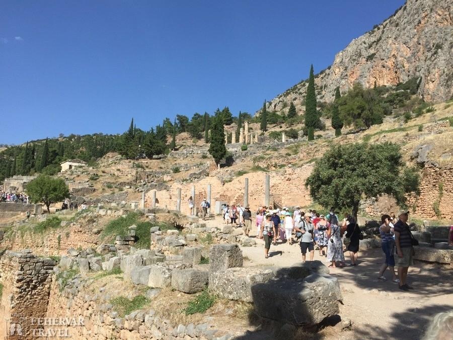 Délelőtt látogatás az ásatási területen, az ókori olimpiai játékok helyszínén, majd Olümpia nagyszerű múzeumának megtekintése következik. A múzeum legértékesebb kincse a világhírű Hermész-szobor.Továbbutazás Patrasz irányába. Átkelés Európa egyik legnagyobb hídján, mely a Peloponnészoszi-félszigetet köti össze Közép-Görögországgal (fotószünet). A Korinthoszi-öböl menti panorámaúton érkezünk Delphoiba a délutáni órákban. Delphoi, az ókori Görögország első számú jóshelye csodálatos környezetben fekszik. A Parnasszosz-hegységben található szentélyegyüttes az ókori emberek képzeletében a világ közepét jelentette. Az ásatási terület megtekintése után a szállodai szobák elfoglalása Delphoi környékén (1 éj).