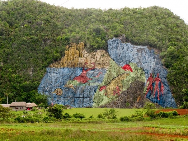 Ebédet követően a térség még egy jelentős látnivalóját látogatjuk meg, amely a Vi?ales-völgytől 4 km-re található. A Mural de la Prehistoria egy hatalmas színes festmény a Mogote Dos Hermanas-on, amelyet Morillo, kubai festő örökített meg ezen a mészkősziklatömbön, és a törzsfejlődés történetét mutatja be.