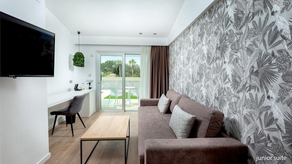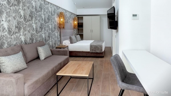 Két fős junior suite: kb. 27-33 m? légkondicionált, fürdőszoba (zuhanyzó, WC, hajszárító) WIFI, műholdas televízió, telefonkávé/teafőző, vízforraló, ingyenes kiságy 2 év alatti gyermek számára, érkezés előtti kérésre. terasz (asztal és székek), kilátás a medencére térítés ellenében: minibár, széf