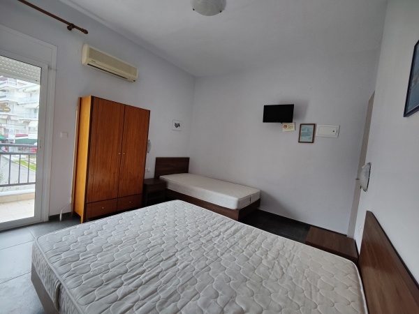 A kiváló elhelyezkedésű apartmanház Paralia központi részén, a tengerparttól kb. 300 méterre található.
