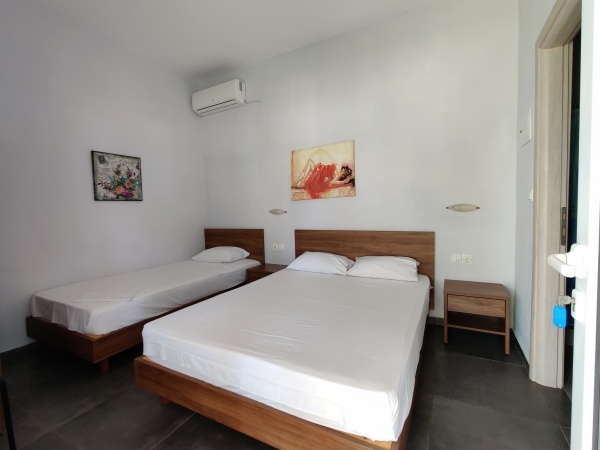 - 2-3 és 3-4 ágyas stúdiók: udvarra/utcára néző földszinti és emeleti szobák, ahol a konyhasarok és a queen size méretű ágyak egy légtérben vannak. A stúdiók felszereltségéhez légkondicionáló (felár a helyszínen fizetendő, 42 EUR/készülék/hét), tévé, konyhasarok - mely a legszükségesebb eszközökkel felszerelt -, fürdőszoba zuhanyzóval, illetve kerti bútorokkal berendezett terasz tartozik. A 2-3 ágyas stúdiókban a 3. fő részére a pótágy normál ágy, a 3-4 ágyas stúdióban 2 franciaágy található.