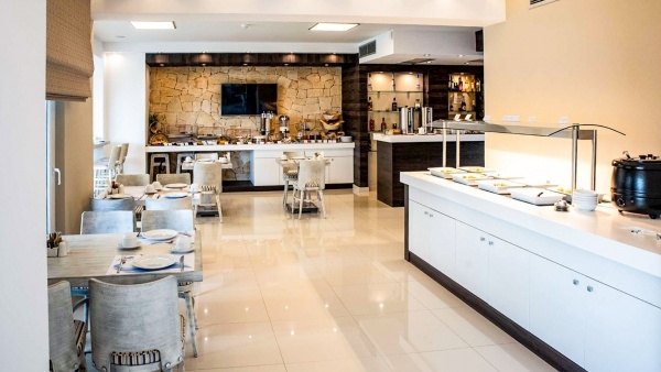 A szállodában több étkezési lehetőség közül választhatsz. A reggelizőhelyen büféasztalos reggeliket kínálnak, ahol nemzetközi ételek széles választéka várja a vendégeket. Az étterem büfé- és ? la carte lehetőségekkel rendelkezik, és elsősorban a görög konyha ínycsiklandó fogásait kínálja. A medence melletti snack bár tökéletes hely egy gyors harapnivalóra és frissítő italokra a nap folyamán.