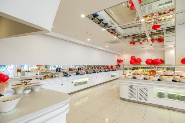 All inclusive: reggeli (07:00 h -10:00 h), késői reggeli (10:00 h-10:30 h), ebéd (12:30 h- 14:00 h), vacsora (19:00 h-21:00 h), esti ital (23:00 h-24:00 h) büfé a főétteremben; sütemények (10:00 h-18:00 h); fagylalt a kijelölt helyen (11:00 h-16:00 h); snackek a medence bárnál és a strand bárnál (11:00 h-16:00 h); üdítőitalok és helyi alkoholos italok a kijelölt bárokban (10.00 h-24.00 h); ? la carte étterem (előzetes foglalással a tartózkodás alatt 1 alkalommal (min. 7 éj esetén). Gluténmentes étkezés - előzetesen jelezni kell!