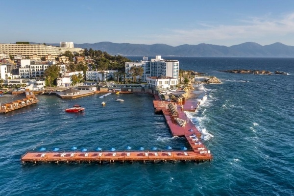 Általános: Szállás leírás: Az 5*-os, összesen 260 szobával rendelkező, családias szálloda Kusadasi városközpontjától kb. 3 km-re, közvetlenül a kavicsos tengerparton helyezkedik el.